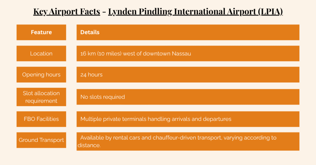 Nassau is located on the island of New Providence and is currently the most frequently requested destination for private jet travel within The Bahamas. The Lynden Pindling International Airport (LPIA) is identified as the main airport serving private planes.