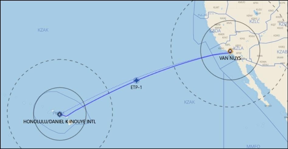 On the flights from Van Nuys (KVNY) to Honolulu (PHNL), the 180-minute arcs dictate both the feasibility and safety of the flight.